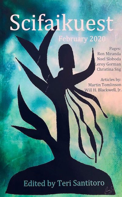 2 March 2020: Happy to see my 3 poems on anger in the latest issue of Femku, edited by Susan Burch. 28 February 2020: My poem "Escape" appears in NOON #16. 20 February 2020: Thrilled to see my cover art "Inside" and 3 scifaiku, 1 horrorku, and 2 tanka in the February 2020 Online issue of Scifaikuest. My horrorku "snowy plains" was selected as the editor's Favorite Poem! :D